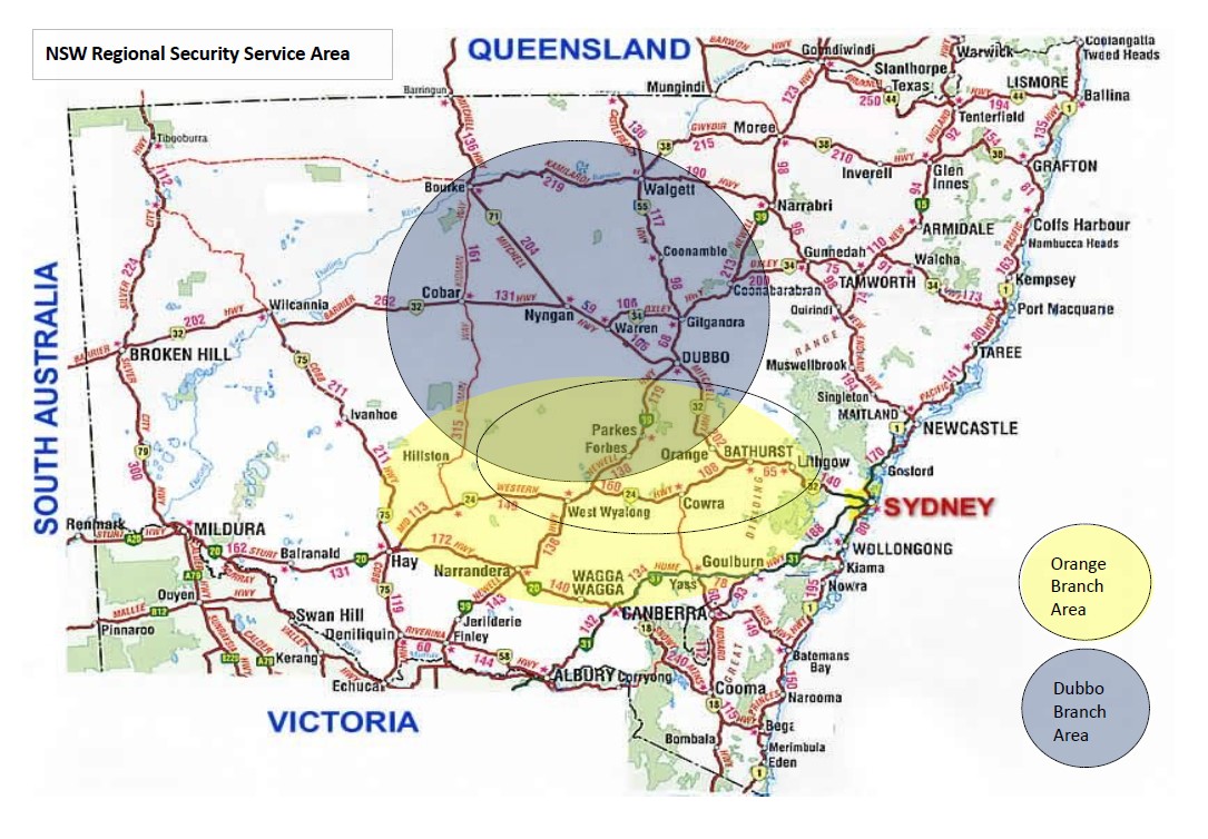 Contact Feel free to contact us for any questions. Head Office Orange NSW 2800 Phone 1300 153 231 Email michael@nswregionalsecurity.com.au Regionial Office Dubbo NSW 2830 Phone 1300 153 231 Email michael@nswregionalsecurity.com.au Service Areas